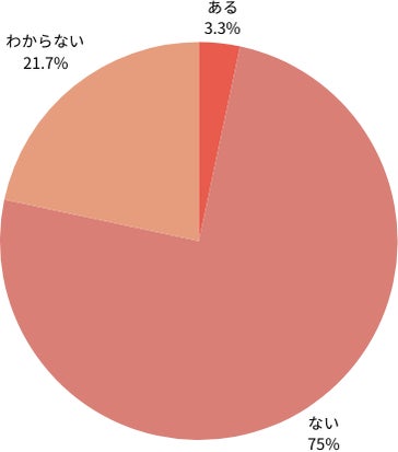アイフルからの在籍確認で周囲に借入がバレたことがない人は75%で、「バレたことがある」との回答は3.3%とわずかだった。なお、「わからない」と回答した人も21.7%いた。
