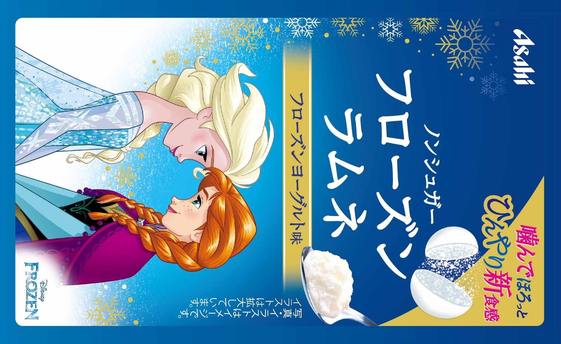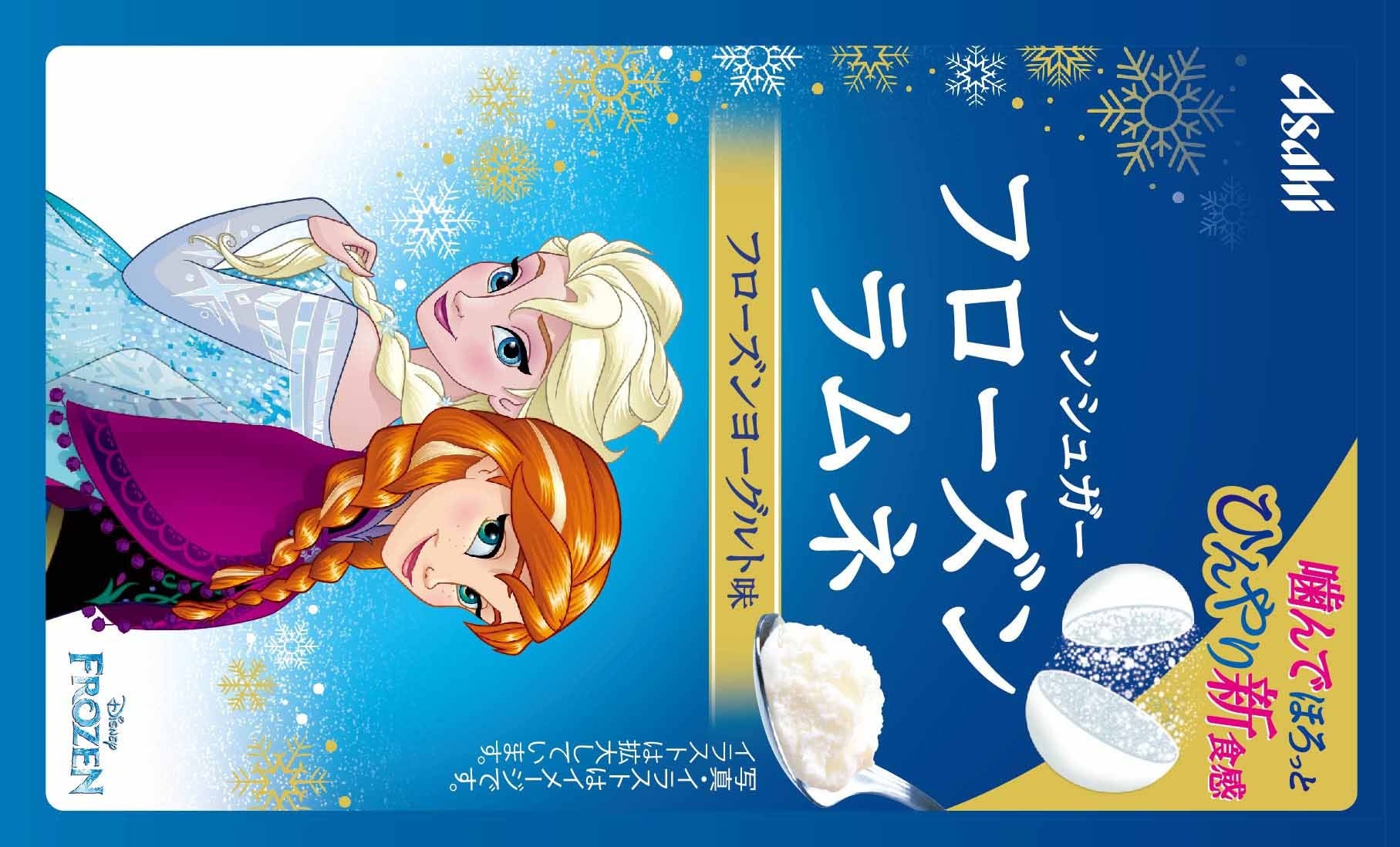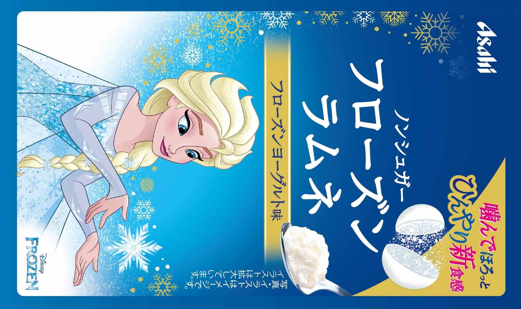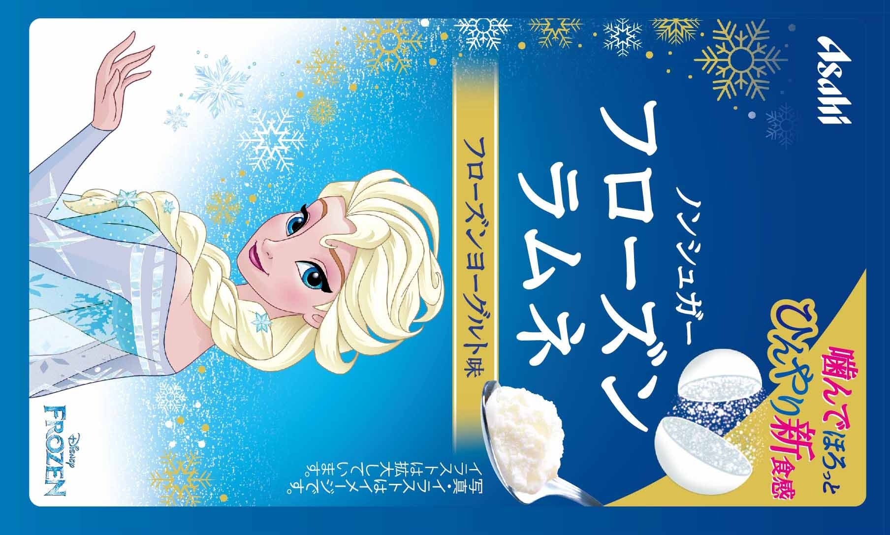 ほろっとした口溶けとひんやりとした新食感が楽しめるノンシュガーラムネ。「アナと雪の女王」のキャラクターをパッケージに採用