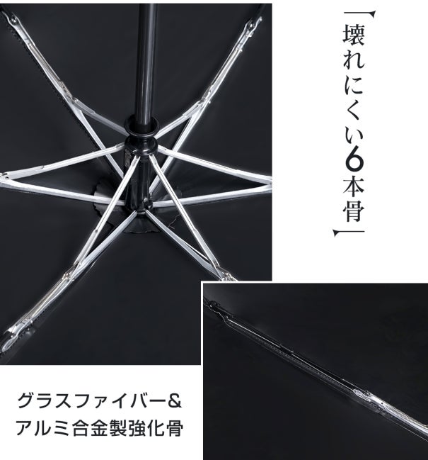 ◎晴雨兼用の高密度撥水生地!グラスファイバー製&アルミ合金性の高強度6本骨。