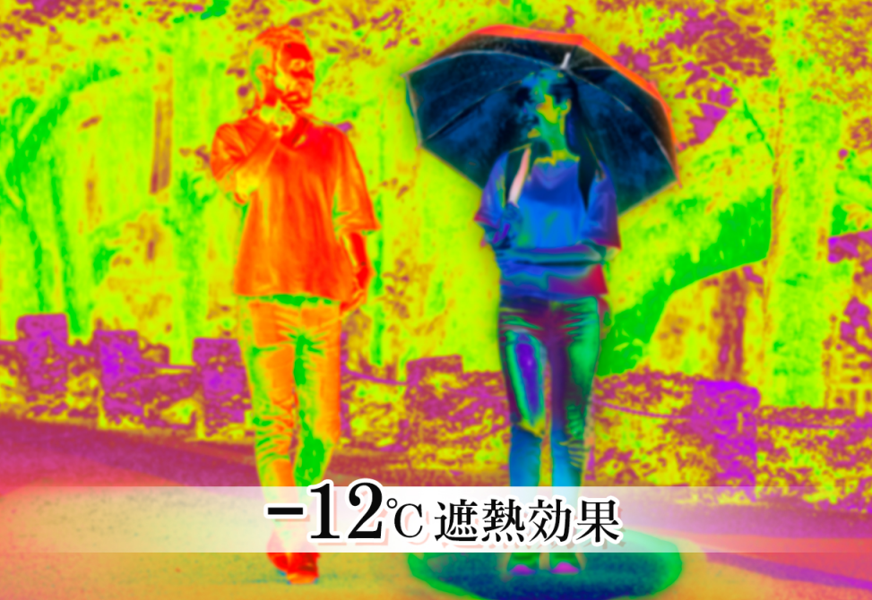 太陽からの熱をしっかり遮断して、-12℃程度の遮熱効果があり、「木陰のような」心地よい涼しさを作ってくれます。