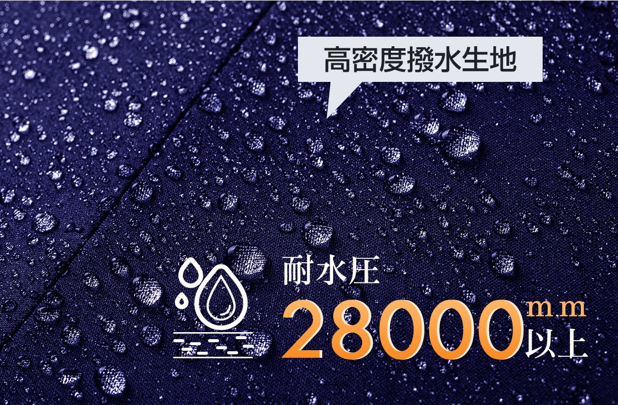 耐水圧28000mm以上となるので、耐水性抜群!いきなりの豪雨に対応でき、安心して使用できます。