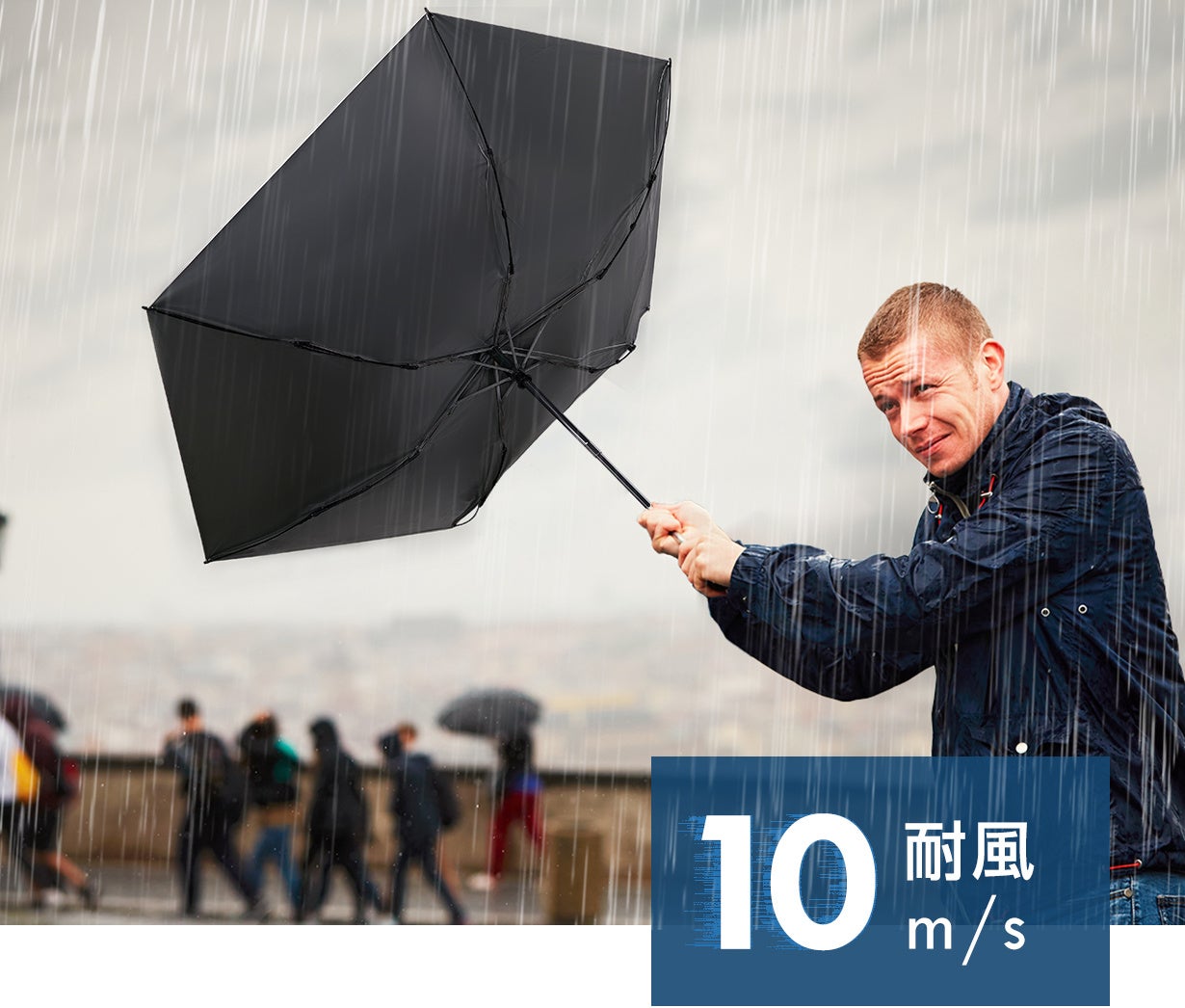 親骨は軽くて強靭なグラスファイバー製ですので、万が一風に煽らて反り返ってしまった場合でも、その弾力性で折れることなく簡単に戻せます。