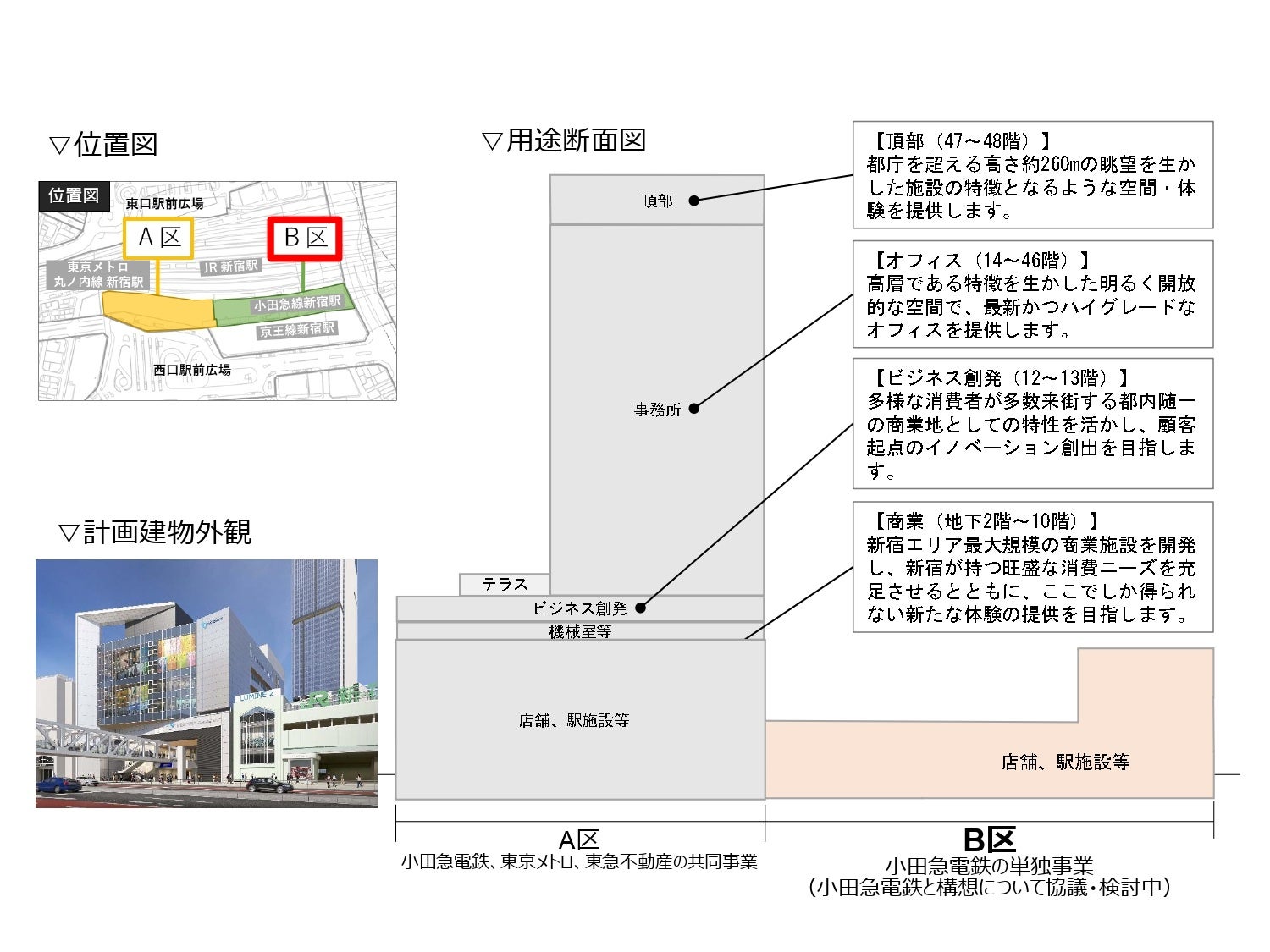 なお、当社は「新宿駅西口地区開発計画(2029年度竣工予定)」において、竣工後の「当該建物「B区」の管理運営」の受託に向けて、小田急電鉄株式会社と「B区」の構想に関する協議・検討を進めております。
