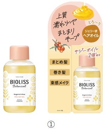 『ビオリス』のアウトバストリートメントシリーズは、1本でトリートメントとスタイルメイク★まで叶えるシリーズとして2023年8月に刷新※1をしました。このたび新たにシリーズに追加する「ポリッシュオイル」はとろりとしたジェリー状のテクスチャーが特長のヘアオイルです。ジェリー状にすることで厚みのあるコート膜がしっかりと髪へ密着するため、濡れたようなツヤ感とスタイルキープ力の両立を実現しました。また、熱を加えることでジェリー状のオイルがとけて固まり、セットした髪型が長時間持続する「ヒートホールド処方」を採用。髪の束感メイク、巻き髪のベース、まとめ髪のベース、ツヤ増しなど、様々な用途でご使用いただけます。さらに、『ビオリス』のアウトバストリートメントシリーズ共通成分の“サジーオイル※2”を2倍※3配合。その“サジーオイル※2”に3種のオーガニックオイル※4とコメヌカオイル※5を組み合わせた濃密ボタニカルサジーCPXにより、髪に濃密なうるおいを与えます。天然香料を使用した、みずみずしく可憐なベルガモット&ローズの香りも特長です。