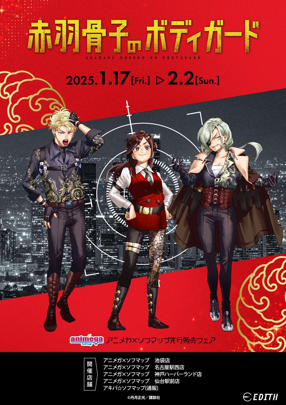 『赤羽骨子のボディガード』より、丹月正光先生描きおろしのオリジナルイラストを使用したグッズが、アニメガ×ソフマップで先行販売決定!