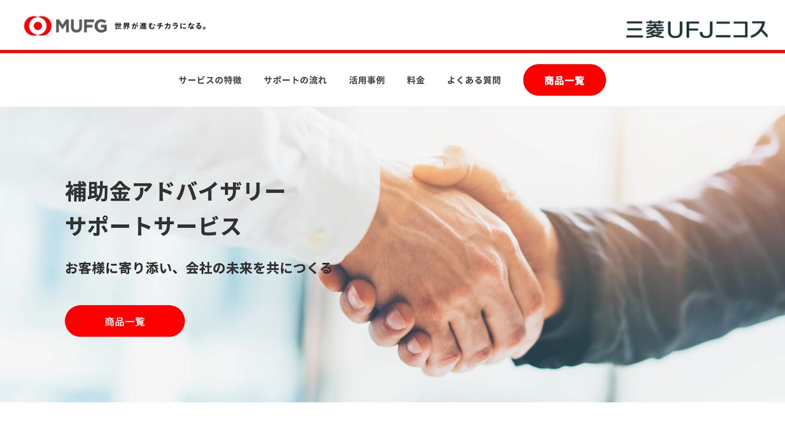 そこで始めたのが「補助金アドバイザリー・サポートサービス」です。事業者様が「どんな補助金を受けられるのか」をアドバイスさせていただき、その補助金を受けるための手続きなどをMUFGグループのネットワークなどを活用しサポートいたします。