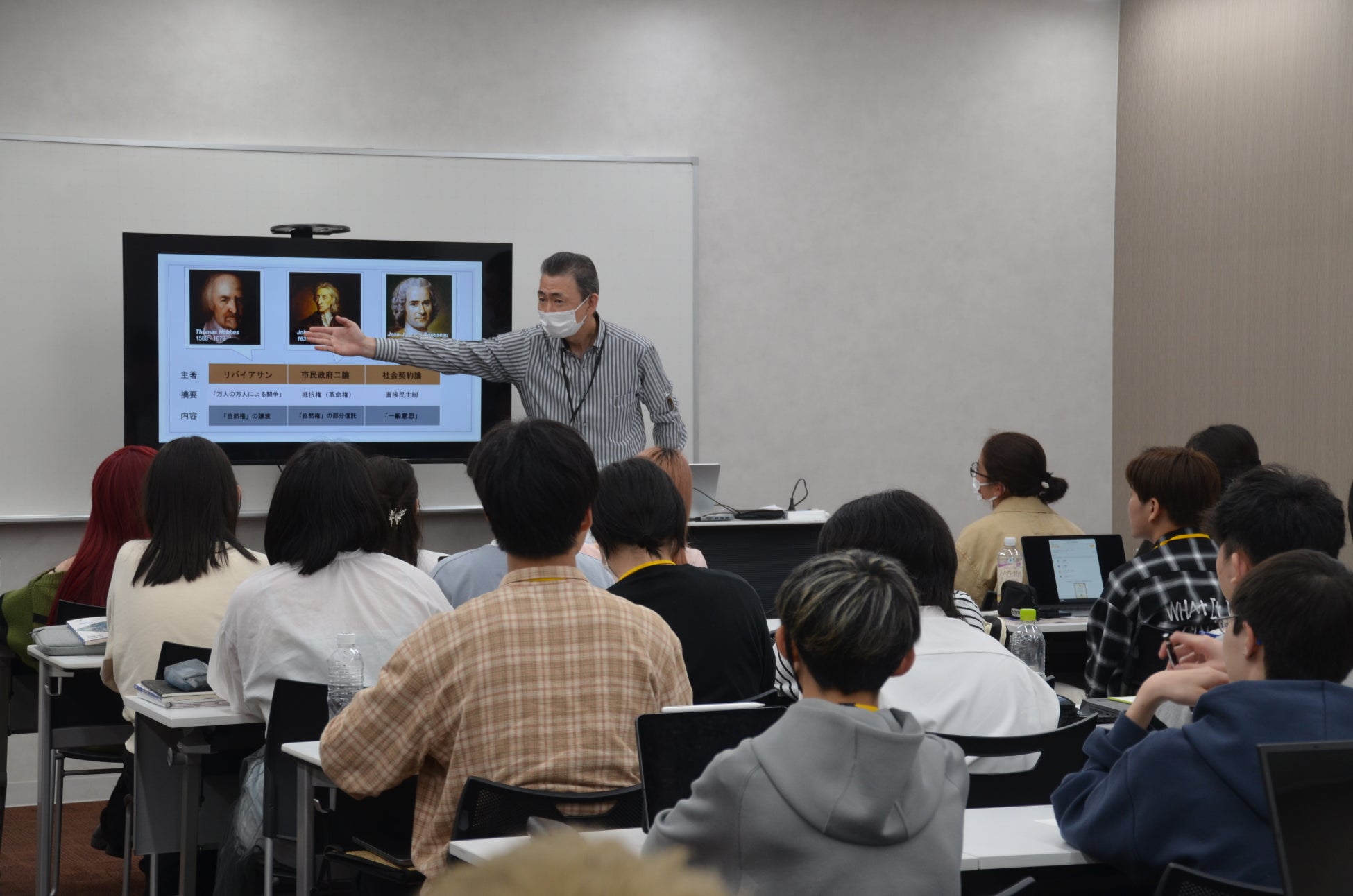 多様性や変化に富んだこの時代では、絶対の正解が与えられることはありません。だからこそ、豊かな教養と柔軟な発想をもって、これからの社会を作り上げていく力が必要になります。「哲学」は、人間の営みについて「普遍妥当」な定義を求めて、「考える」ということを磨き続ける言語ゲームです。今生きている社会を、哲学的な見方で見つめなおすことで、今見えている世界が全く違ったものに見え、身近な社会問題も新たな視点で捉えなおすことができるようになります。高校生のうちに、そんな「目を開く」体験をしてほしいという思いで、対話を繰り返し、とことん「考える」授業を展開しています。