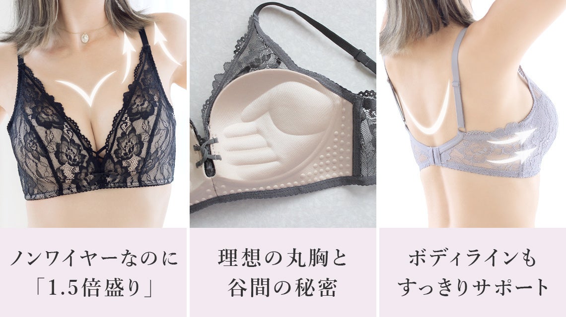 • 理想の丸胸&くっきり谷間:中央の隠しゴムでI字の谷間をキープ。
