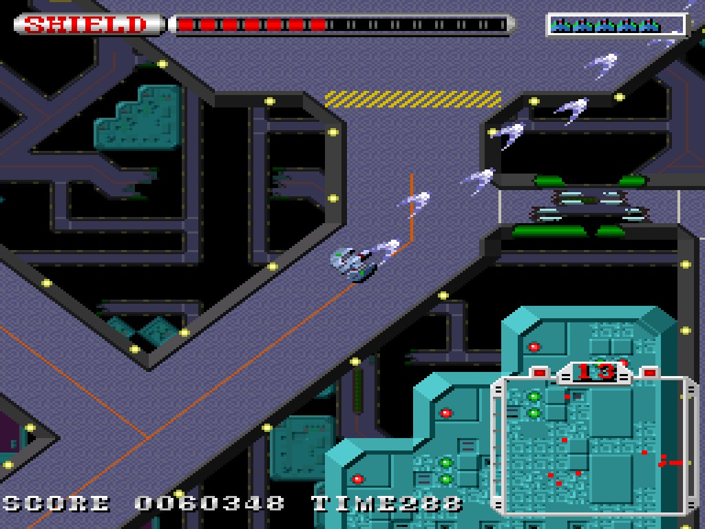 本作は1990年にリリースされたシューティングゲーム。プレイヤーは重機動兵器グラナダを操作して全9ステージを攻略します。グラナダにはショットと、反動がある代わりにショットの16倍のダメージを与えられるブラスターが搭載されており、これを駆使して戦います。なおグラナダは砲台の向きを固定したまま移動することが可能。使い方次第では効率良い撤退戦や、臨戦態勢を維持したまま角を曲がることができます。その挙動にはひとクセあるものの、攻略にはこうしたテクニックは必要不可欠! ゲーム序盤ではグラナダならではの挙動に慣れておきましょう。