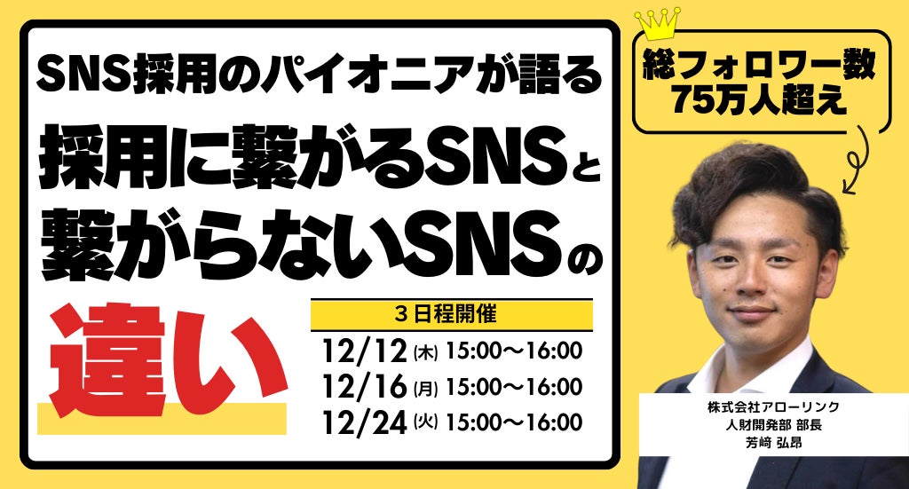 タイトル:<総フォロワー数75万人超え>SNS採用のパイオニアが語る採用に繋がるSNSと繋がらないSNSの違い