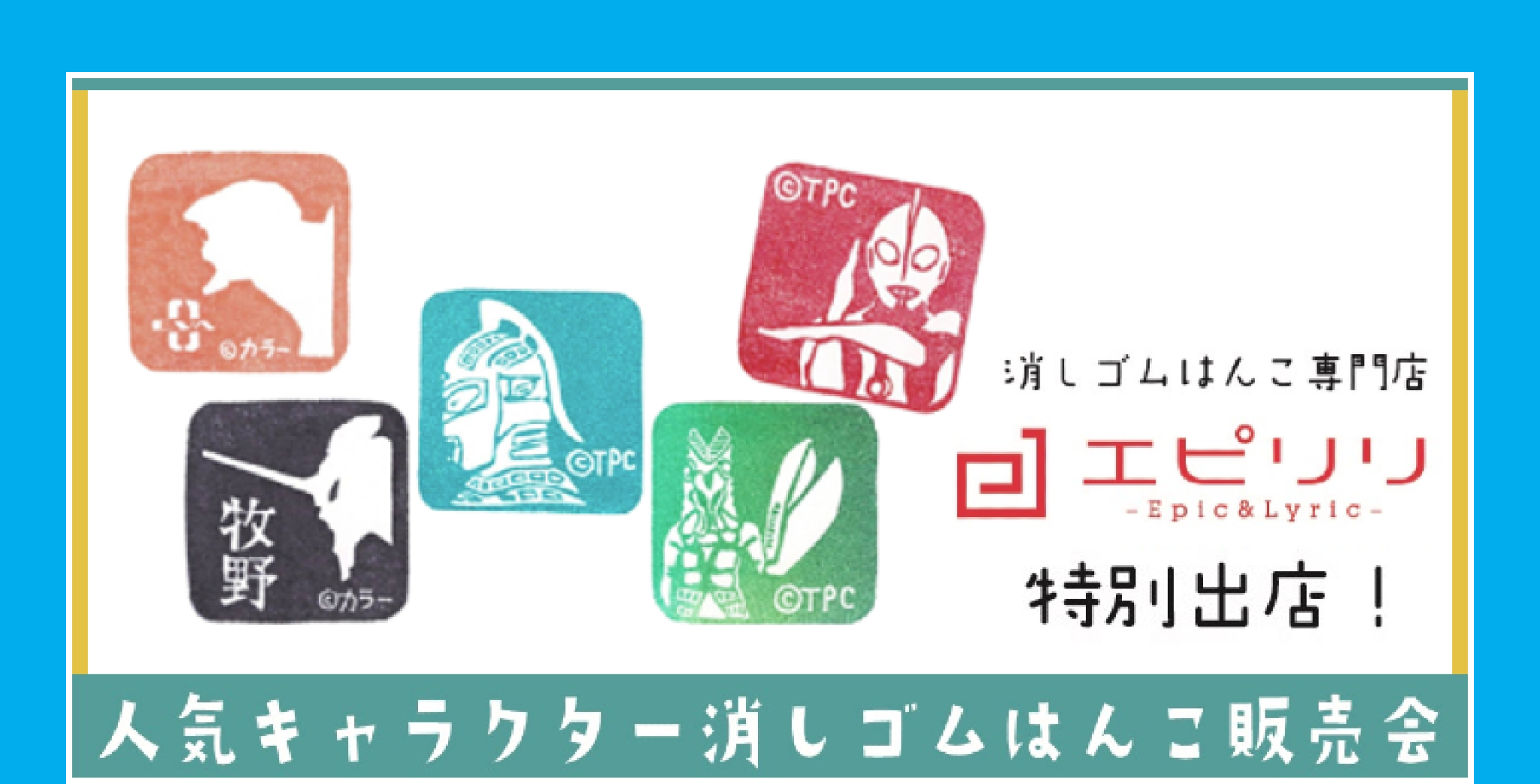 『「消しゴムはんこ」を愛するすべての方のために』をコンセプトとした消しゴムはんこ専門店「エピリリ」が特別出店。人気キャラクターの消しゴムはんこ販売会を行います。エリピピさん来店イベントではその場でご希望の商品にお名前や好きな言葉をお入れします。