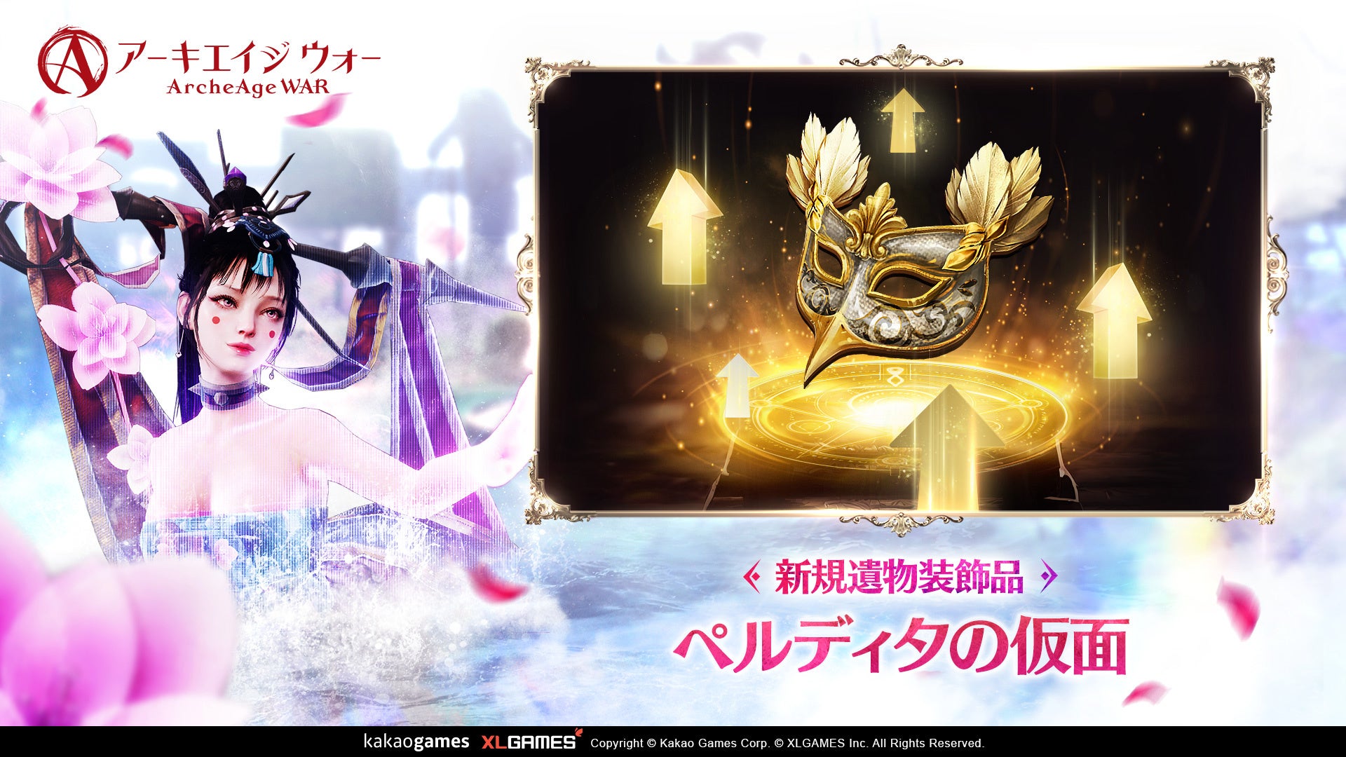 今回のアップデートでは、新たな遺物装飾品である「ペルディタの仮面」が追加される。
