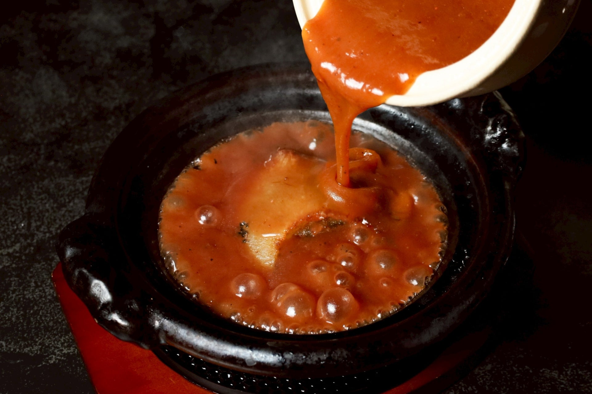 熱した土鍋にスープを注いだ瞬間、立ち上る湯気と香り。