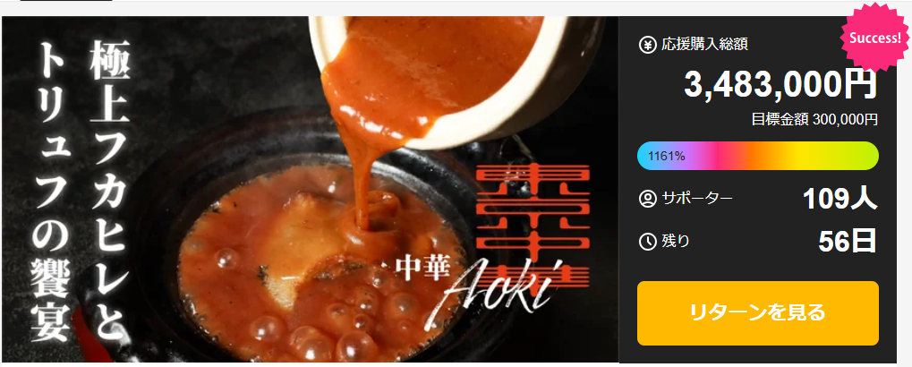 中華Aokiは、恵比寿店オープン時のMakuakeプロジェクトにおいても大きな反響をいただき、これまで多くの皆さまに特別な空間と体験をお届けしてまいりました。そしてこのたびの中目黒店においても、プロジェクト公開からわずか3日で支援総額300万円超を突破するなど、期待の高まりを感じる反響を頂戴しております。