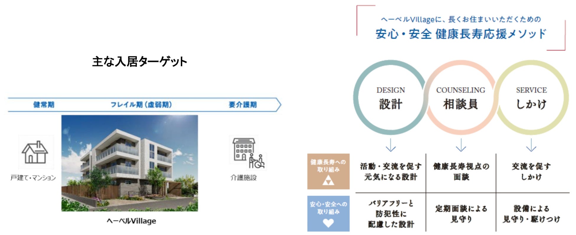 当社は今回の追跡調査結果を生かし、健康長寿・フレイル予防のサービスに役立てるとともに、これからもヘーベルVillage入居者の生活に寄り添い、健康寿命の延伸と社会保障費の抑制など超高齢社会における課題解決に貢献してまいります。