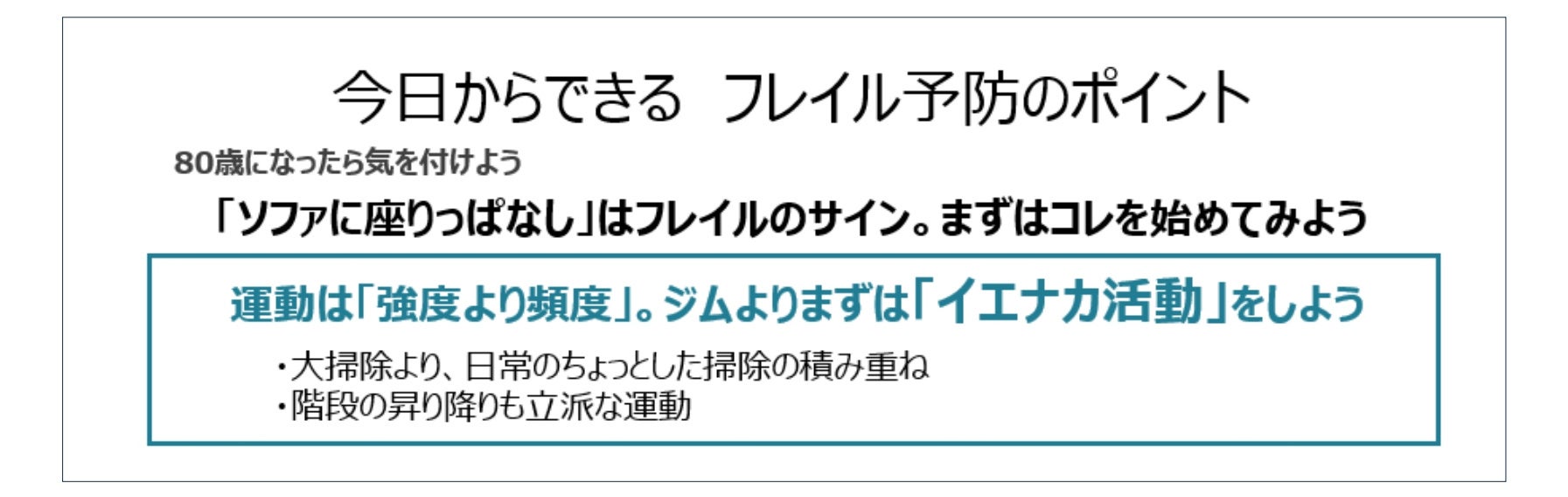 3.フレイル予防のヒントは運動の“強度”より“頻度”。まずは身近な「イエナカ」活動を