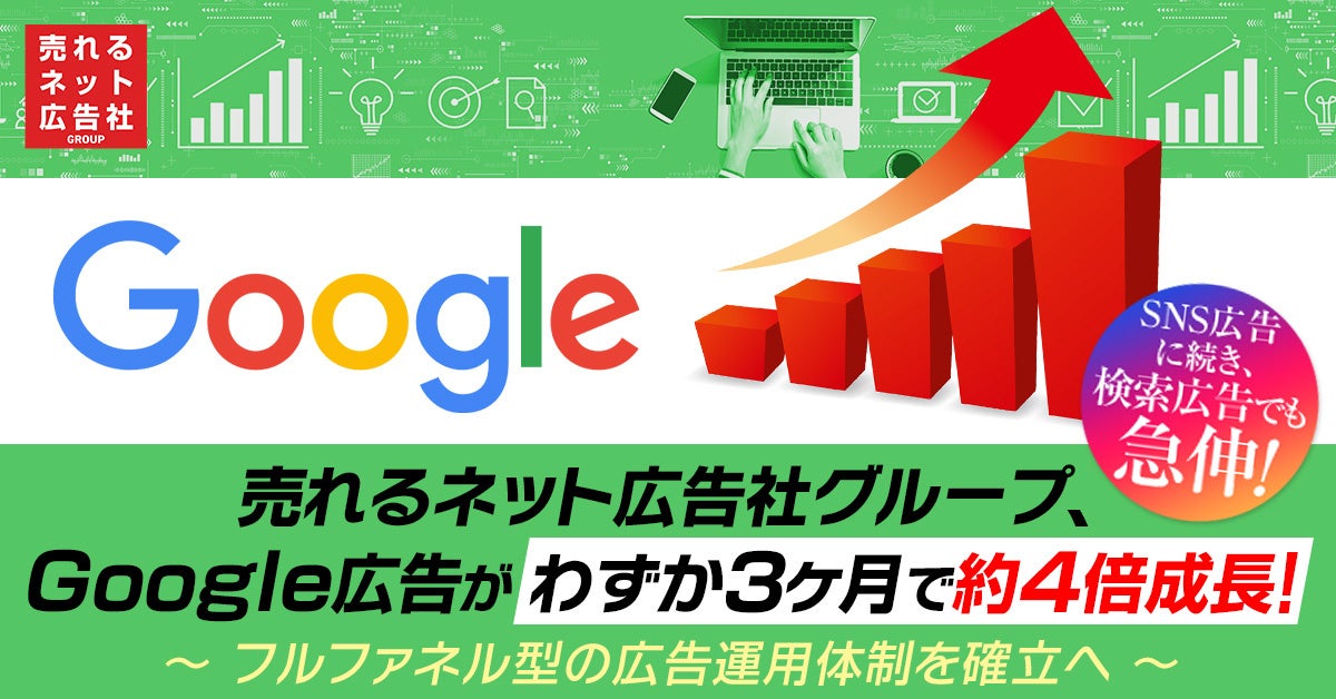 売れるネット広告社グループ、Google広告がわずか3ヶ月で約4倍成長!SNS広告に続き、検索広告でも急伸!~ フルファネル型の広告運用体制を確立へ ~