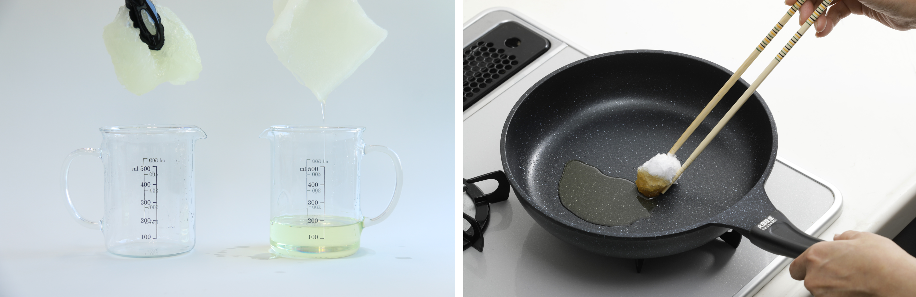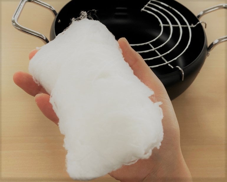 約20倍の吸油力!水ははじき、油だけを吸収する「油をぐんぐん吸いとるマジカルわた」のご紹介