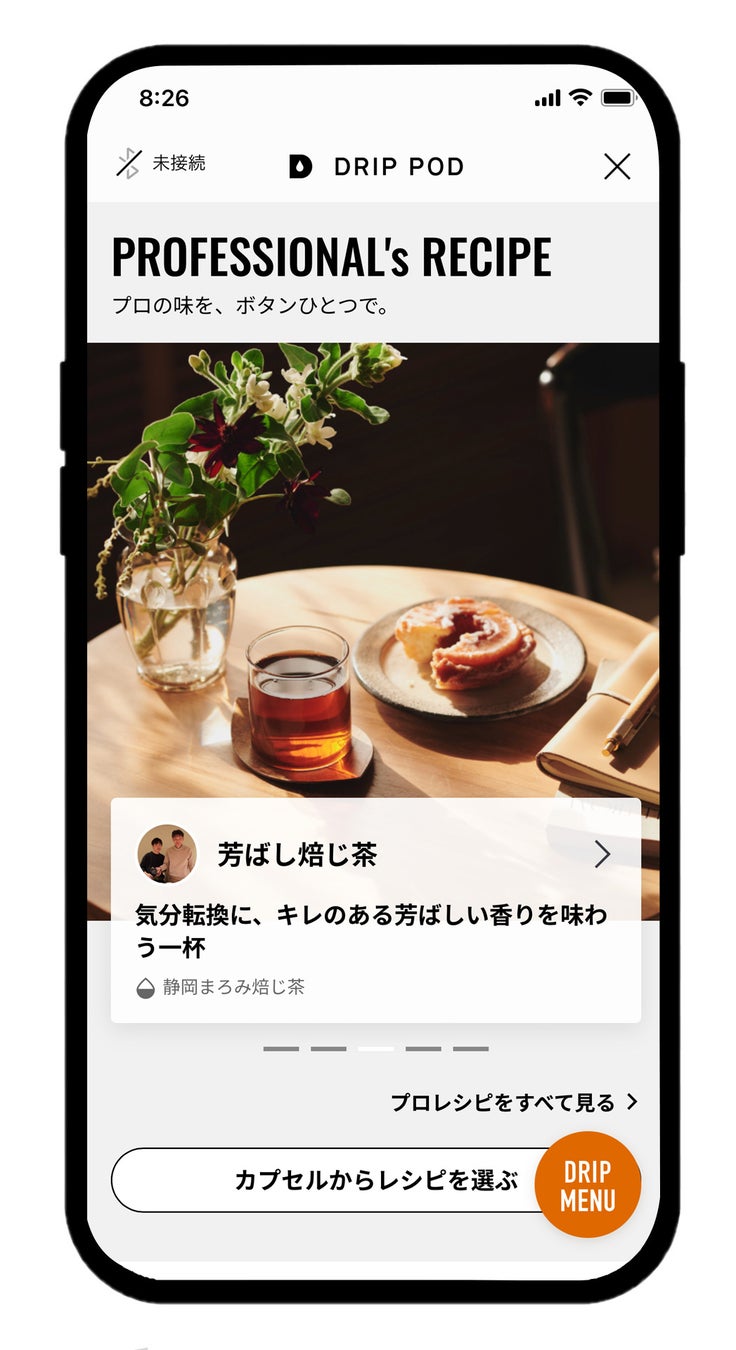 今回、新たに追加される「プロレシピ」は、ドリップポッド専用お茶カプセルの開発にも携わる静岡県の茶商 赤堀商店が開発を行いました。開発した「プロレシピ」は、「深蒸し静岡煎茶」をホットとアイスで楽しむことができるレシピと、「静岡まろみ焙じ茶」をホットと焙じ茶オレ(ミルク)で楽しむことができるレシピの合わせて4つです。お茶の専用カプセルでも「プロレシピ」を活用することで、お茶本来が持つ甘みやうまみを最大限に引き出し、日本の伝統的なお茶の味わいを楽しむことができる、ドリップポッドならではの新たな楽しみ方をご提案します。