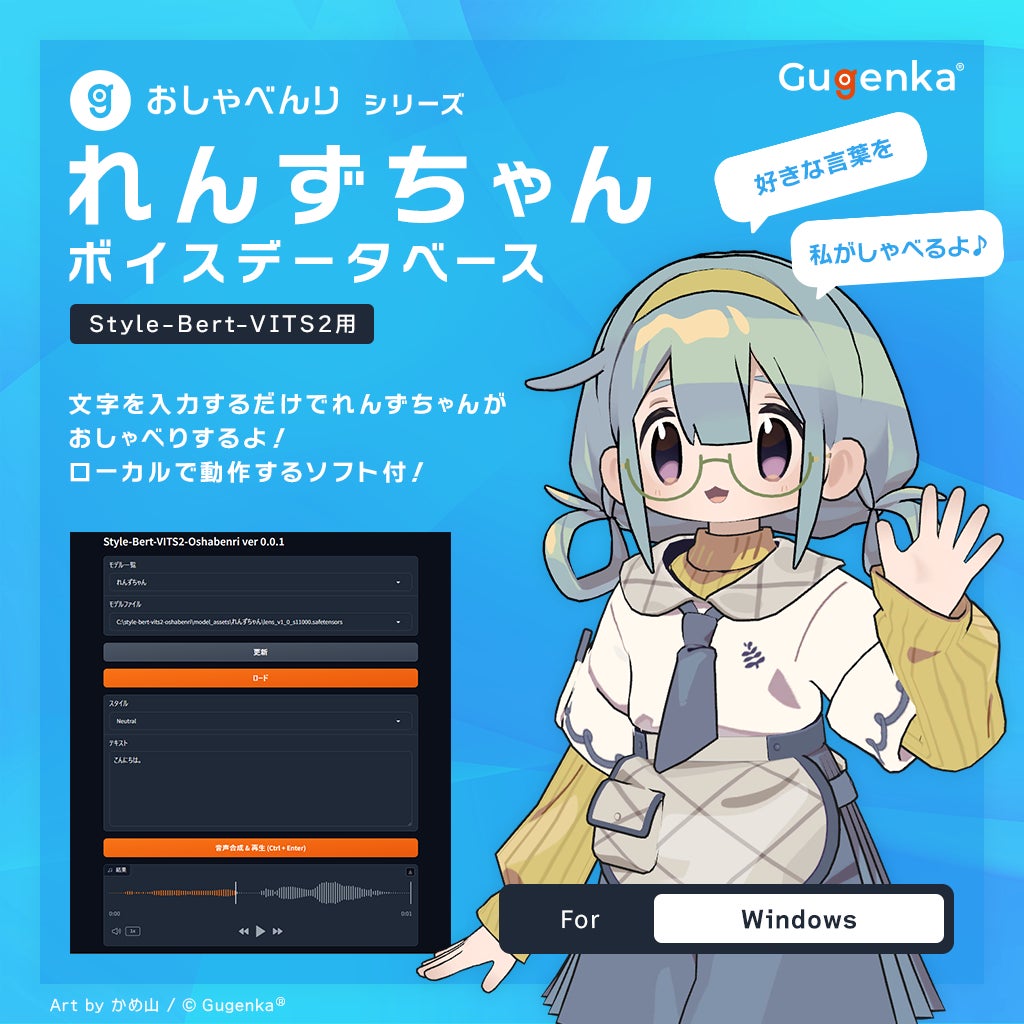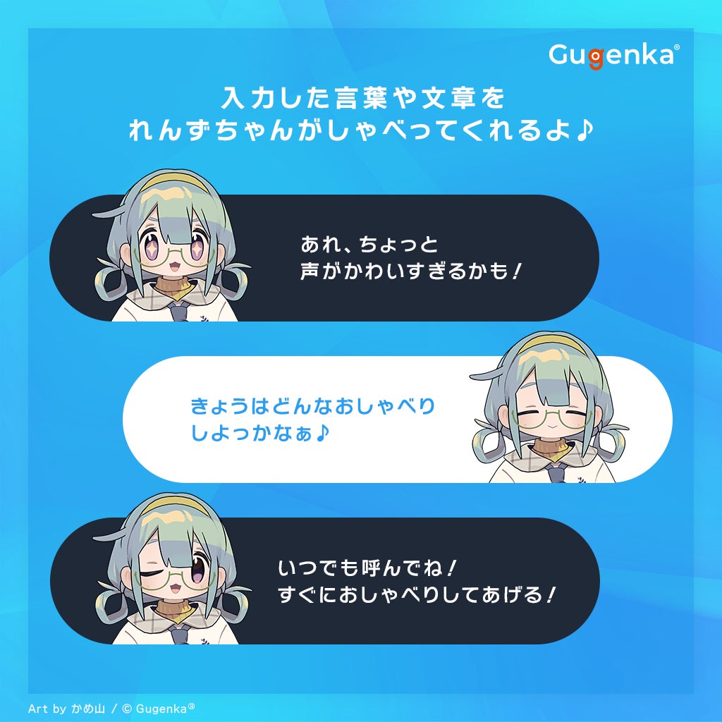 株式会社Gugenka(代表取締役CEO 三上昌史)は、声優事務所と提携し、音声読み上げツールで使用可能なボイスデータブランド「おしゃべんり」を2024年11月7日(木)より提供開始することを発表いたします。「おしゃべんり」シリーズの第一弾として、人気クリエイターのかめ山氏がデザインしたキャラクター「れんずちゃん」のボイスが同日よりBOOTHにて販売されます。