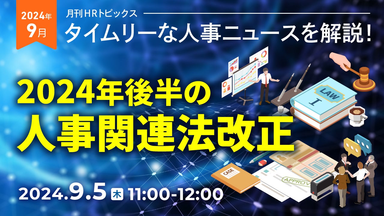 タイトル:タイムリーな人事ニュースを解説! 月刊HRトピックス 2024年9月「2024年後半の人事関連法改正」