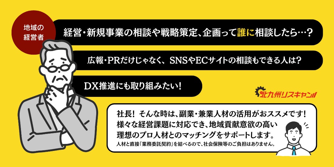 「経営・新規事業の相談や企画を誰かに相談したい」「SNS等の広報に力を入れたいけどどう活用したらよいか分からない」等々、社内だけでは課題解決の糸口が見つからない…そんな悩みを抱える市内企業の皆様へ。