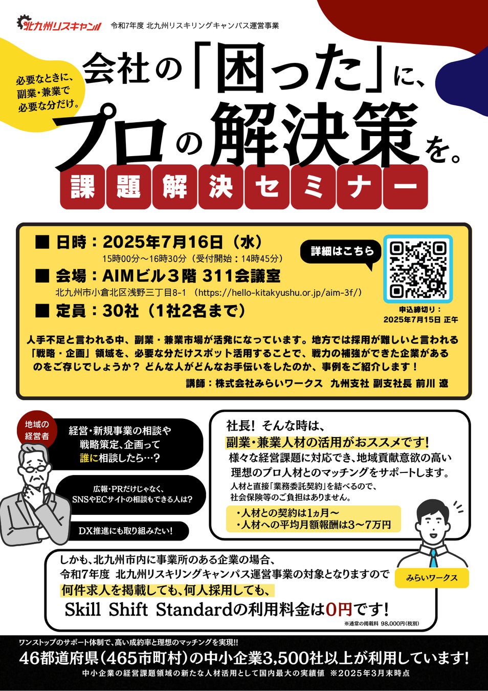 自社の経営課題解決に外部プロ人材を活用してみませんか? 実際の解決事例を踏まえたトークセッション有のセミナー第1弾を7月16日(水)に開催します!