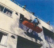 屋上からバスケット担架使用