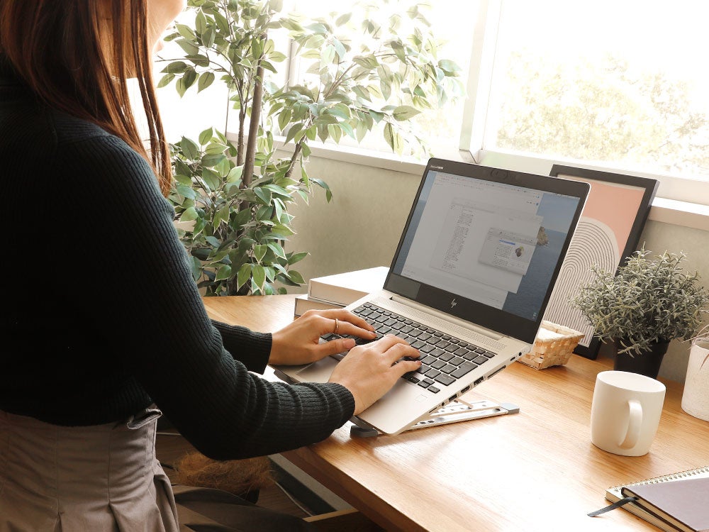 底面に排気口があるノートPCと使えば、デスクとの間にスペースを確保でき熱がこもりません。