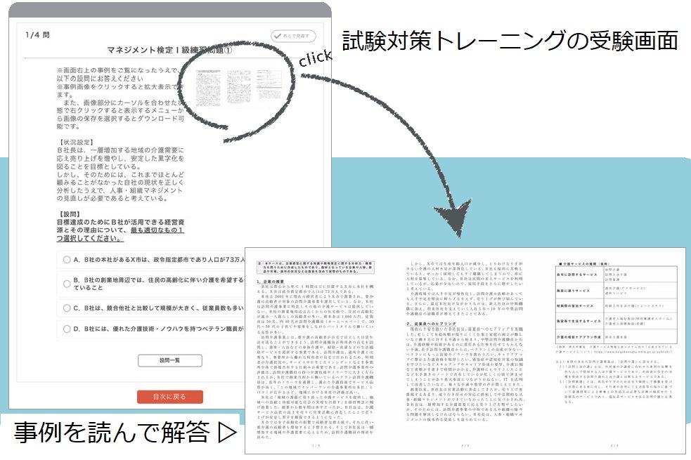 受講者は、企業経営に関する知識でこれを読み解き、問いに答えます。