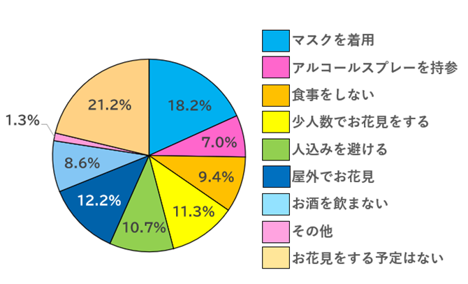 政府が推奨している感染対策を守って、お花見を行っている方が多いのが分かります。