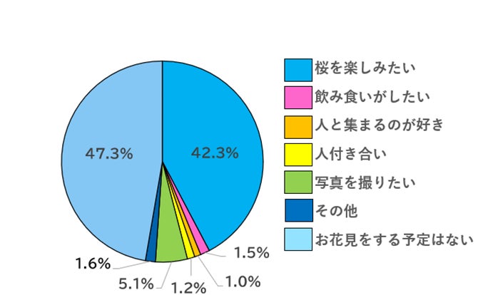 - 宴会よりも、純粋に「桜を楽しみたい」方が42.3%