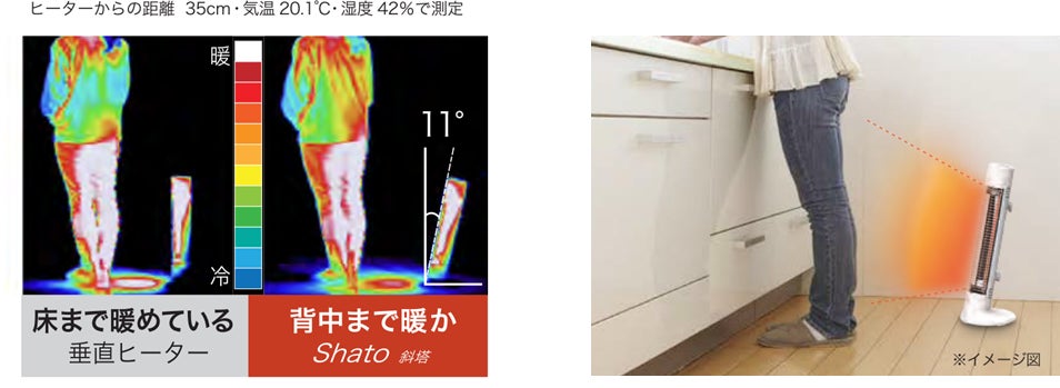 「ななめ11度」で効率暖房、オリジナルミニタワーヒーター「Shato・斜塔」を新発売