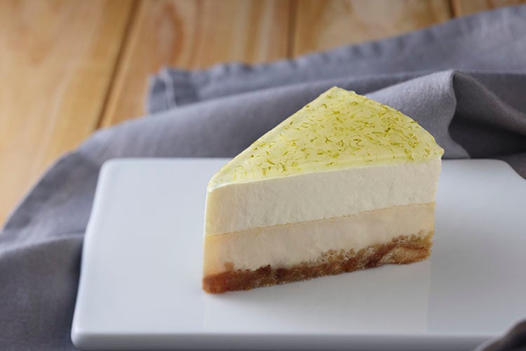 シンプルな見た目ながら、山田牧場(甲賀市)の乳製品や、九重味噌(大津市)の白味噌、滋賀県産の米粉や甘酒、塩麴など地元の素材の味わいをぎゅっと凝縮したベイクドとレアの2層のチーズケーキ。アクセントとして爽やかなライムの香りをきかせました。