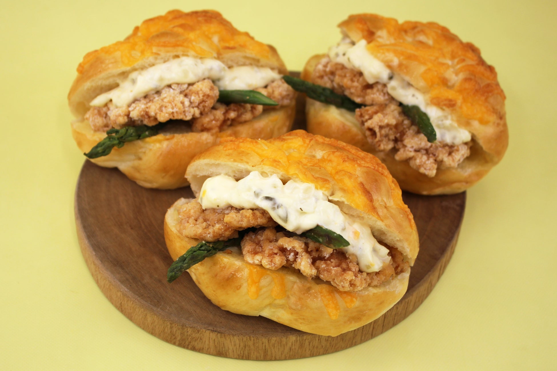 ふんわりとした食パン生地に、アスパラと竜田揚げ、タルタルソースをサンドしました。春の訪れを告げるアスパラを、香ばしい竜田揚げとともに。タルタルソースの濃厚な味わいが、パンの美味しさを広げます。