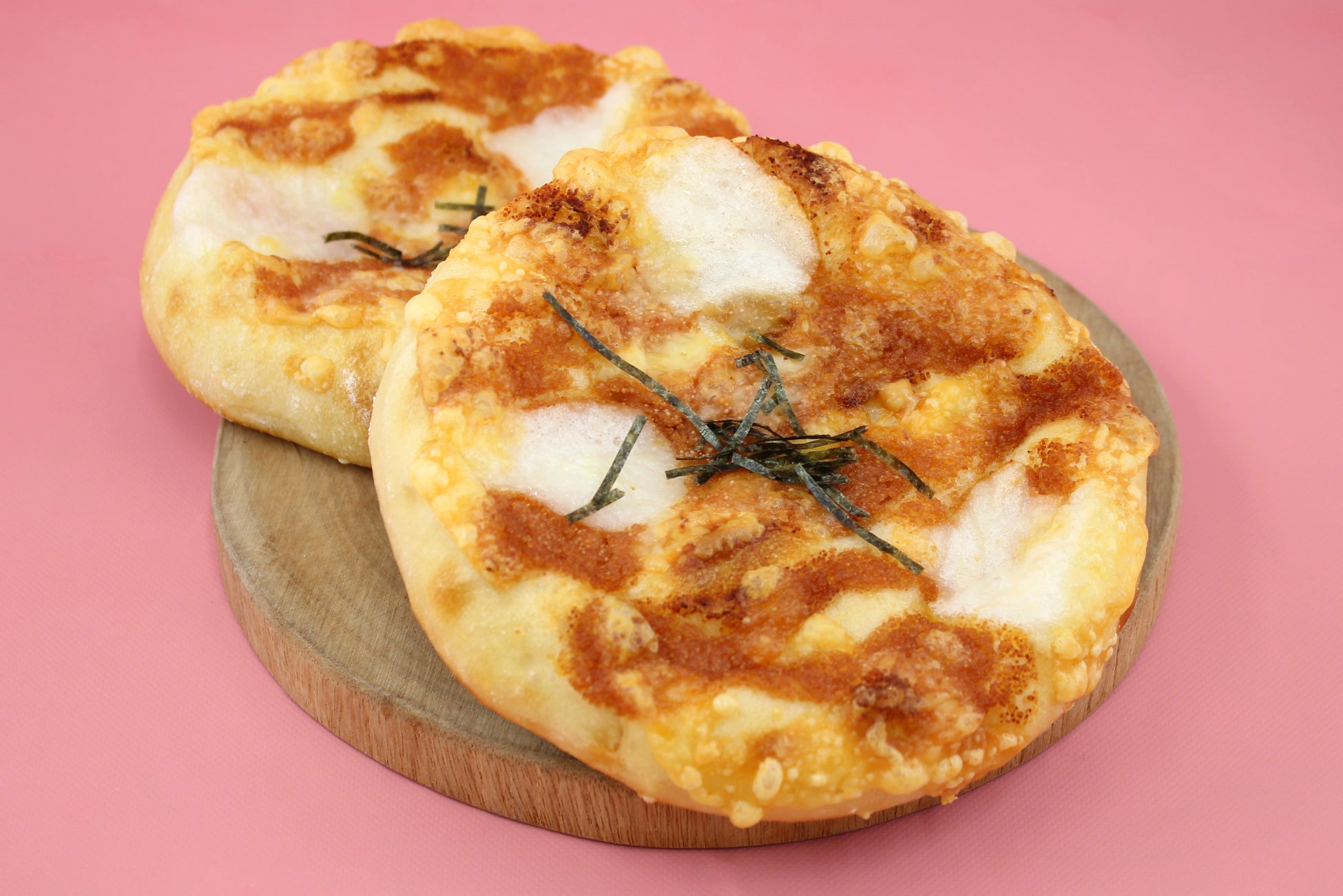 もっちり噛み応えのあるピザ生地に、明太子フィリングともちフィリングをトッピングし焼き上げました。もちもちとした弾力のある生地に、おもちのやわらかな甘みと明太子の風味がじゅわっと広がる、やみつき和風ピザです。