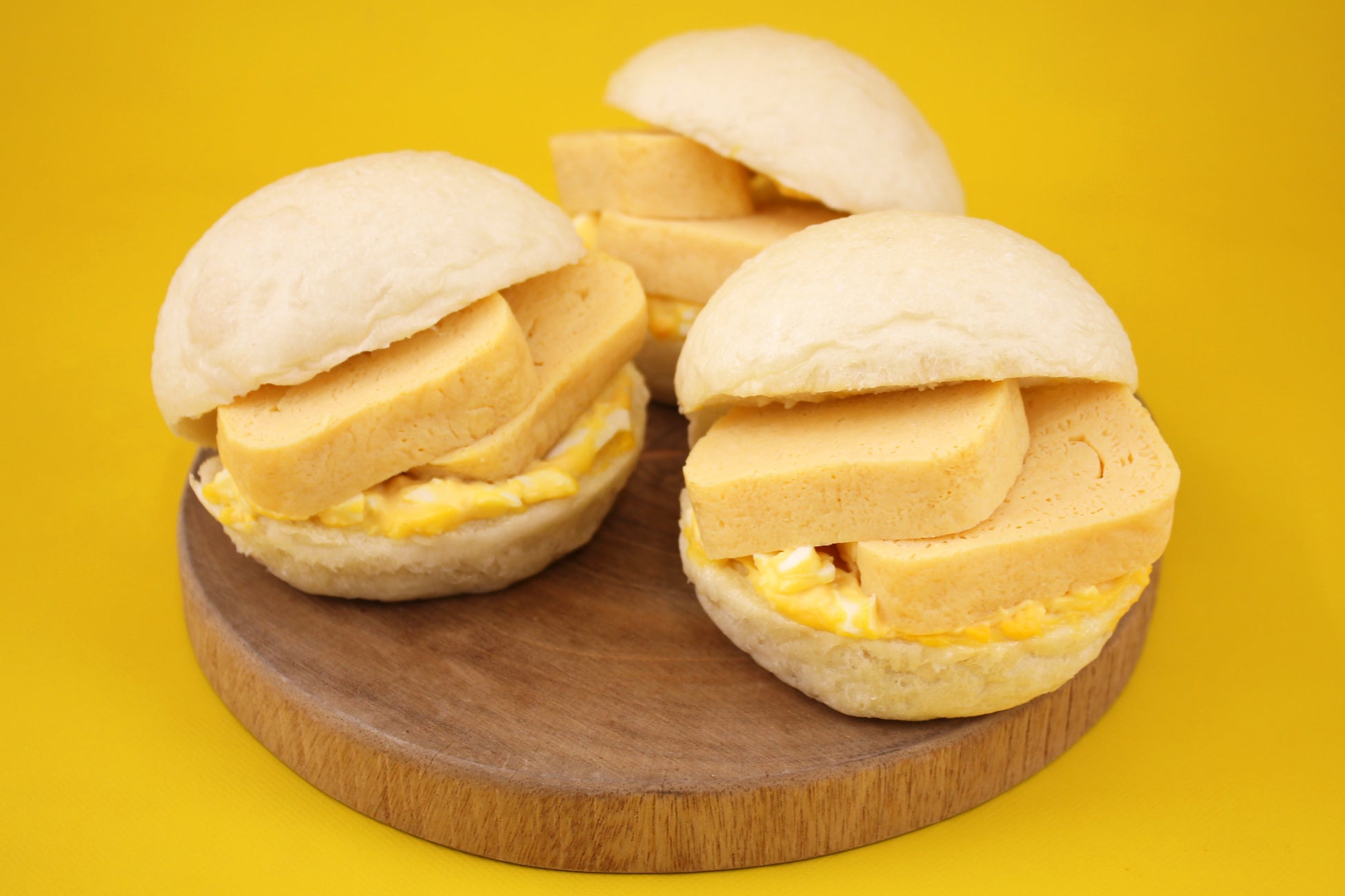 北海道産小麦、湯種を練り込んだもっちりふわふわなパンに、だし巻きたまごとたまごサラダをサンドしました。だし巻きの優しい風味とたまごサラダのまろやかな味わいが溶け合う、たまご好きにはたまらないご褒美パンです。