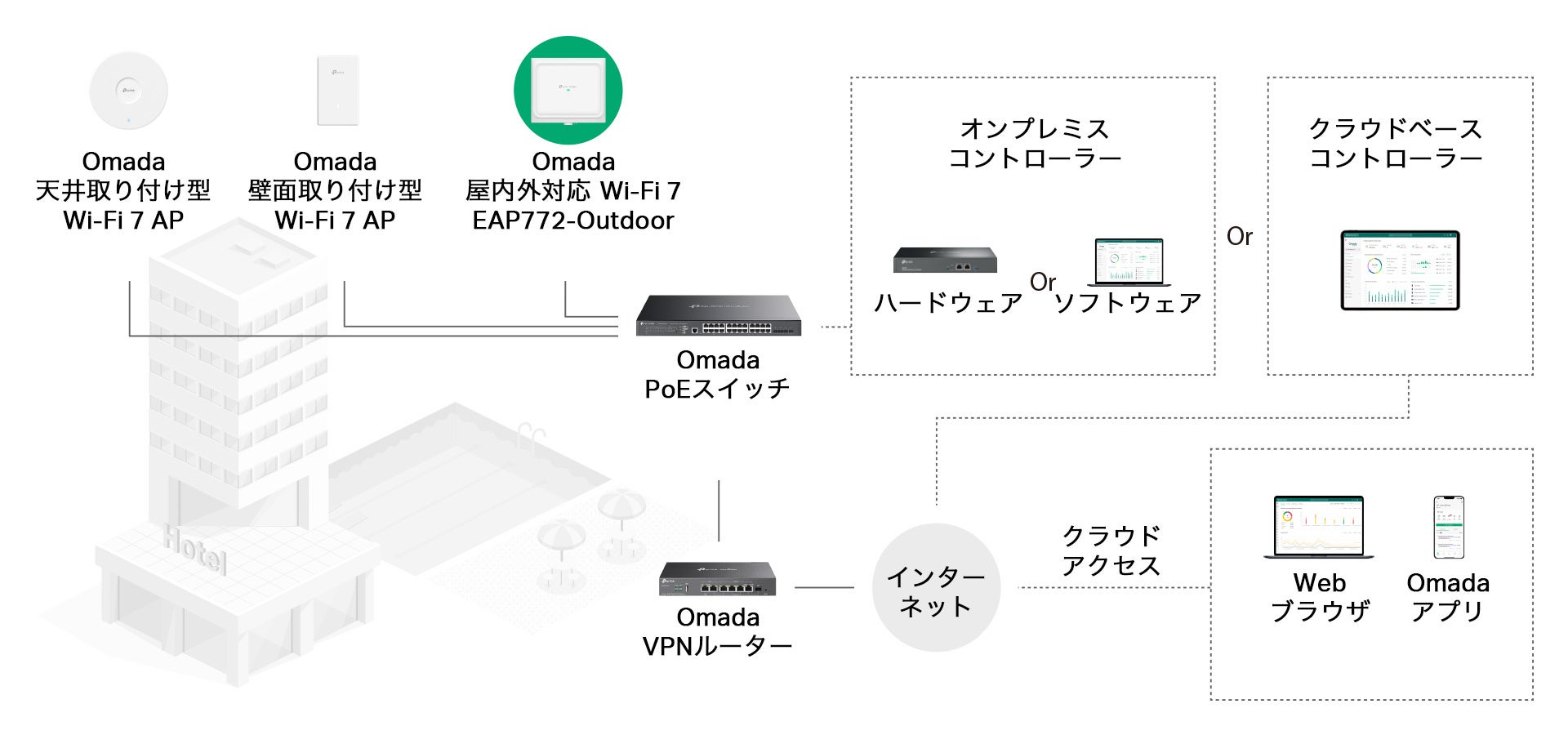 *2: 災害用統一SSID「00000JAPAN」をご利用いただくには、Omadaハードウェアコントローラーと合わせて使用いただく必要がございます。