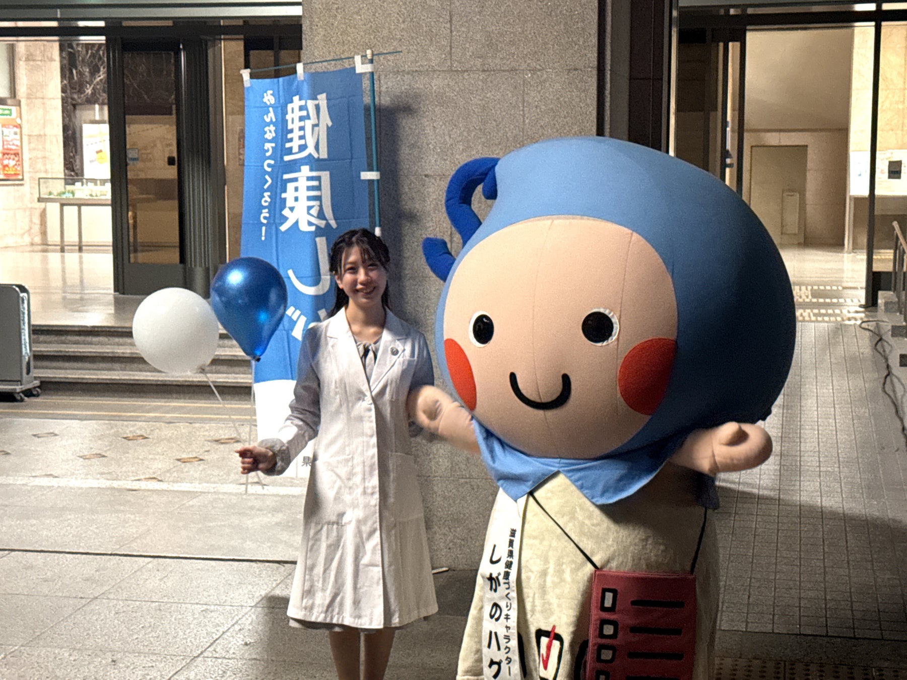 2024年、滋賀県では「滋賀県庁ライトアップ」とともに、環境に配慮したLEDバルーンを無料で配布する参加型イベント「TEAL BLUE JAPAN in SHIGA」が開催されました。さらに、イベント公式アンバサダー「粟岡里菜さん」や滋賀県健康づくりキャラクター「しがのハグ&クミ」も参加し、盛り上げてくださいました。
