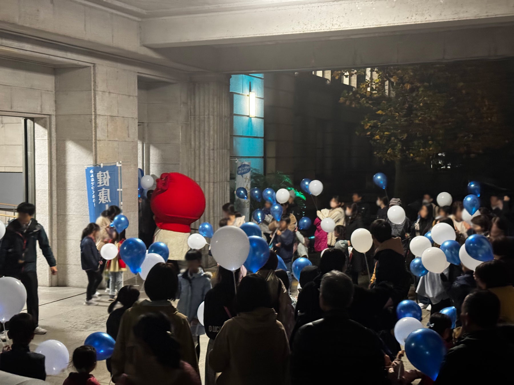 トークショー終了後は、参加者全員でカウントダウンを行い、「3、2、1!」の掛け声とともに手持ち型バルーンを一斉に掲げました。幻想的に光り輝くバルーンの景色は、参加者から歓声を受け、会場全体が感動に包まれました。