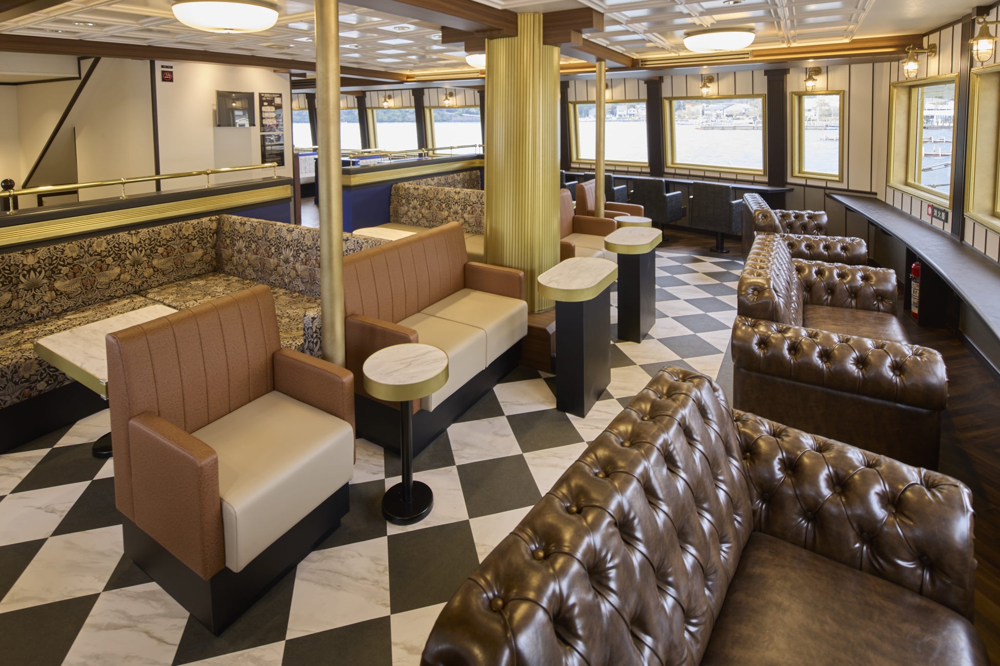 箱根海賊船「ビクトリー」は18世紀に活躍したイギリスの戦艦「ビクトリー」をモデルシップとして2007年に建造しました。リニューアルでは、お客さま一人ひとりが心地よい豊かな船旅をお楽しみいただけるように様々なタイプの座席を新設するなど、特別船室のインテリアを刷新しています。また、船内カフェはバーカウンターをイメージしたシックで落ち着きのある空間へ生まれ変わりました。さらに、特別船室専用デッキを改良して、芦ノ湖を全身で感じられる開放感を高めています。