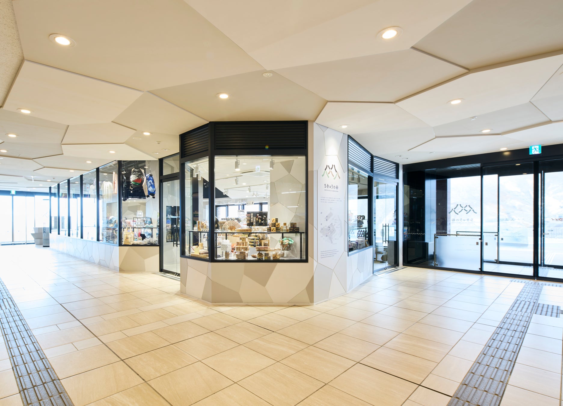 大涌谷の雄大な景観に調和したデザインで、箱根らしさや、地元神奈川にゆかりのある土産品をお買い物いただけます。大涌谷の自然をイメージしたオリジナルのスイーツやドリンクを、店内のカウンターや店外の各スポットにて絶景とともにお楽しみいただけます。