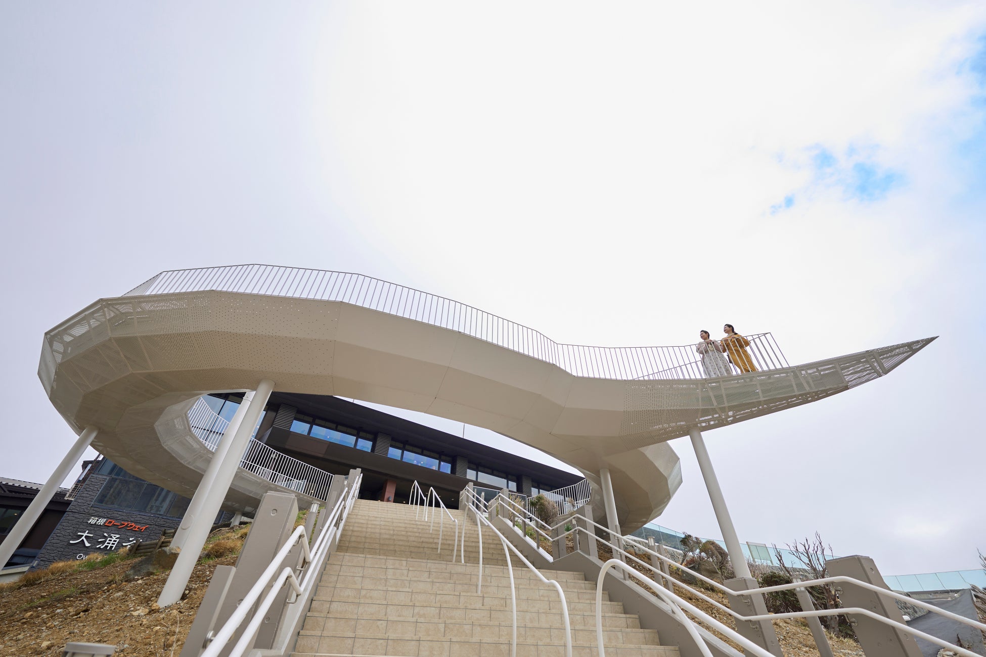 風が円を描くように全身を吹き抜ける直径約18mの回遊テラスです。床のパンチングメタルを通して足元からも風を感じることができます。体を押すような吹き抜ける風や、音の迫力を感じながら地球や自然とのつながりを体験できます。小さなお子さまや車いすをご利用のお客さまにもお楽しみいただけます。