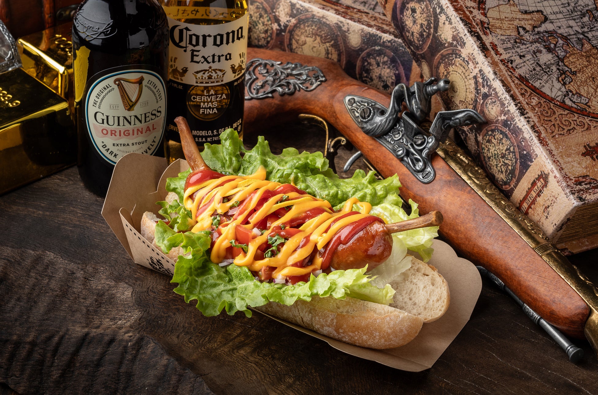 「海賊船内の厨房」の名に相応しいアンティーク感のあるレンガ調の壁とフィラメントランプに照らされた内装は、まるで海賊の集まる港に迷い込んだようです。宝箱を開けたときのようなワクワク感あふれるスイーツや、豪快なホットドックなど、“海賊らしさ”を随所に散りばめたメニューをご用意。