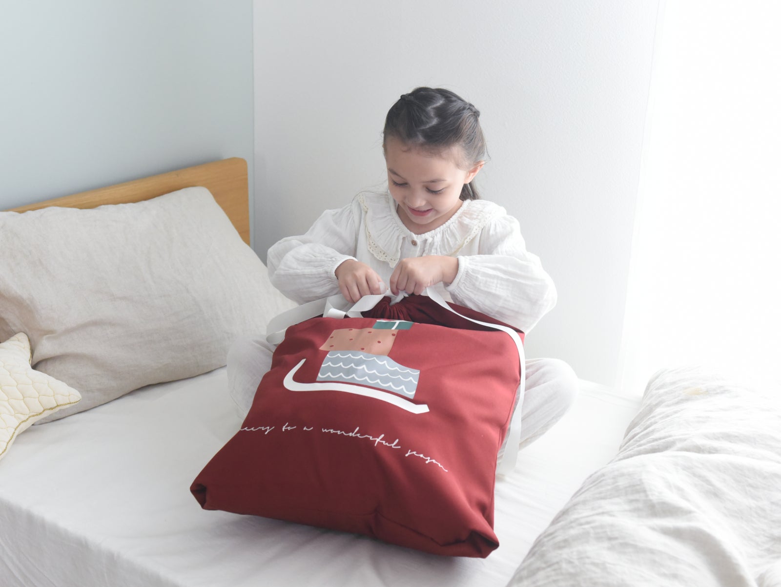 クリスマスイブに子ども達へのプレゼントを入れて、ツリーの足元やベッドの枕元に置いておけば、翌朝とっておきのサプライズを演出できます。