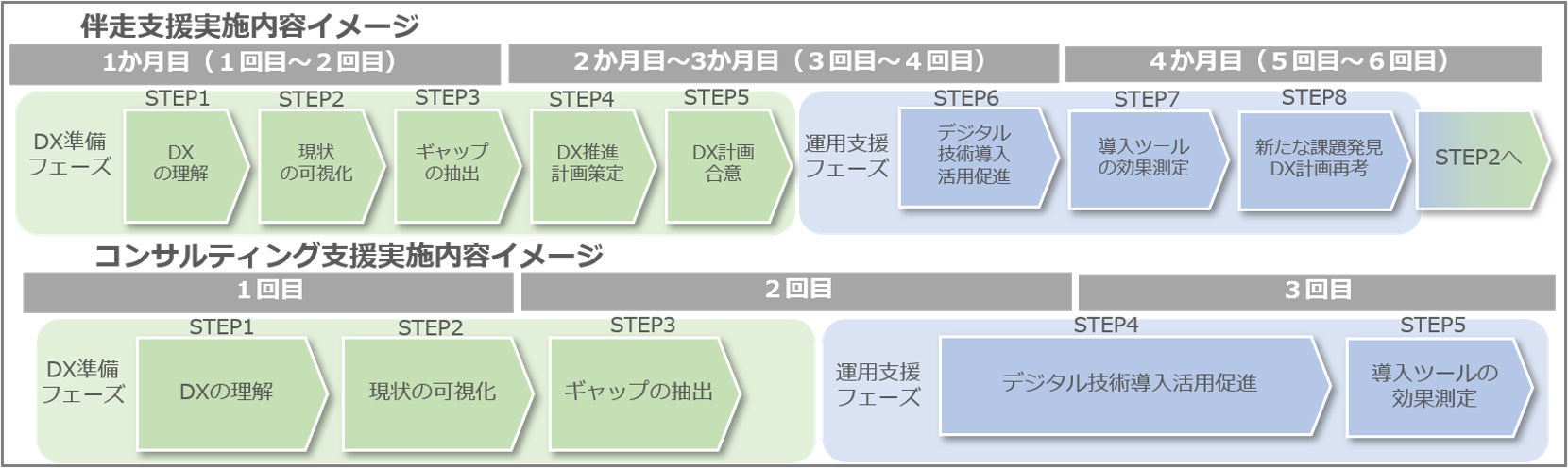本事業でフォーバルは、デジタルを活用したビジネス変革の推進を目的として、中小企業の課題把握や課題の分析、そして解決策として適切な戦略・推進体制の整備等を目的とした伴走型相談支援を実施し、企業が円滑にDXを進められるようサポートしてまいります。
