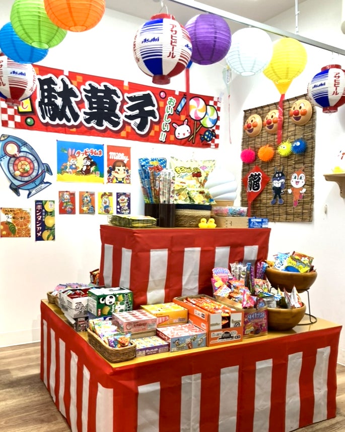 秘密の小部屋のような駄菓子コーナーに入ると、昭和の縁日のような雰囲気の楽しいコーナーが現れます。空間に入る楽しさと選ぶ楽しさで発売開始してからお子様に大人気となっております。