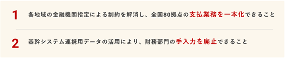 ・全国80拠点の支払業務の一元化