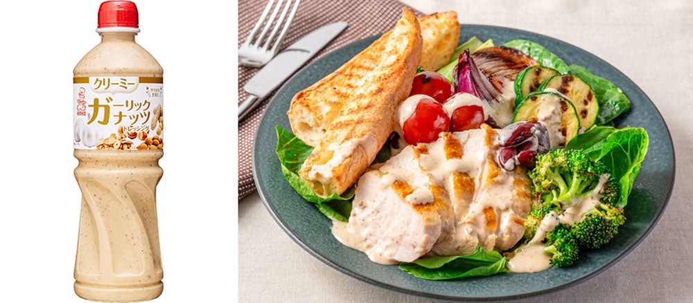 パンチのあるガーリック風味がローストチキンなどの肉類を使用したサラダにぴったりです。フライドガーリック、乾燥たまねぎ、3種のナッツの食感をお楽しみいただけます。