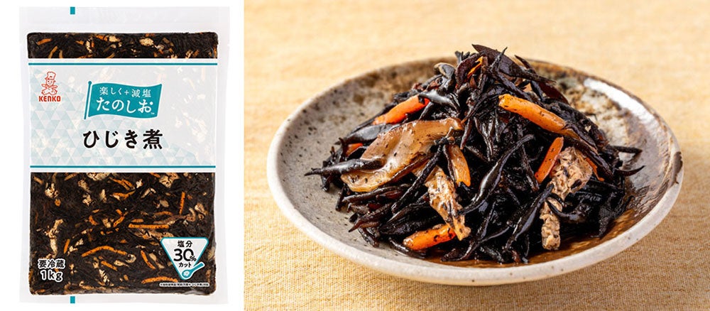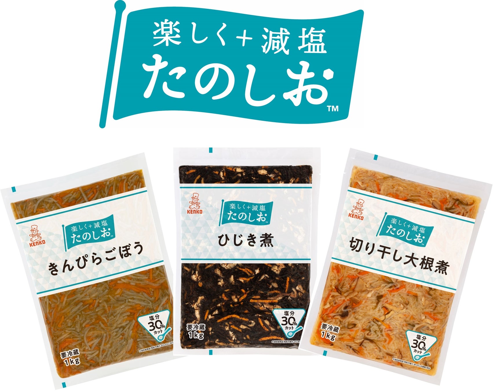 日本人は塩分過剰と言われている中、健康志向の高まりから低塩・減塩ニーズは増加しています。当社では、こうしたニーズに応え、「楽しく+減塩」をテーマに、新ブランド「たのしお」を立ち上げました。当社従来品と比較して塩分30%カット。美味しさと減塩のバランスを取り、素材の旨味をいかした満足感のある味わいです。日本古来の食文化である和惣菜の中でも馴染みのある定番商品をラインナップしました。「美味しいからこそ選びたくなる」減塩商品として、健康的で持続可能な食の未来を切り開きます。